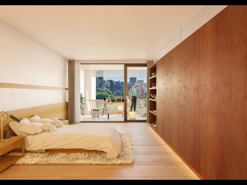 Al frente y al contrafrente, comienzan en el 5º nivel y se elevan hasta el 11º. Todos se benefician de la mayor altura y sus extraordinarias vistas. Son 7 pisos de 169 m2 cubiertos con balcón de 19 m2 con 2 dormitorios, 2 baños y toilette.
