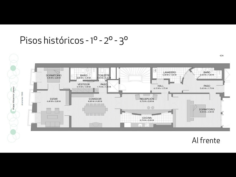 -Se encuentra justo en la mitad de una de las cuadras con menos tránsito vehicular de Recoleta y en una estratégica posición frente a la plaza Vicente López, de la que obtiene vistas privilegiadas que nunca nadie le podrá quitar.