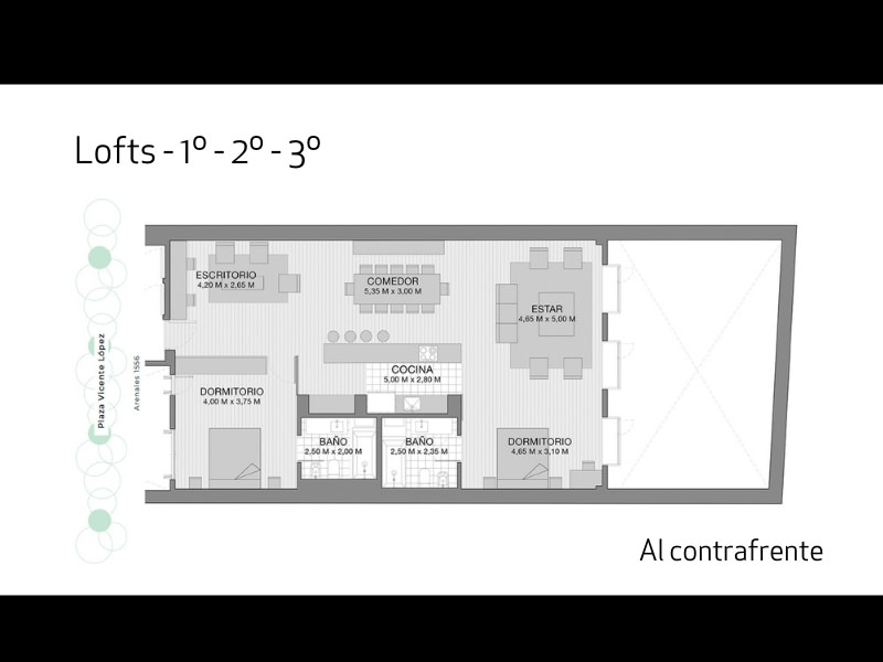 -Un loft de 122,8 m2 cubiertos con un patio de 48 m2 descubiertos en planta baja.